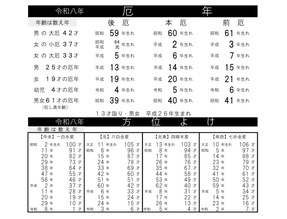 - 2025.11.26 【お知らせ】令和8年 厄年・方位除け